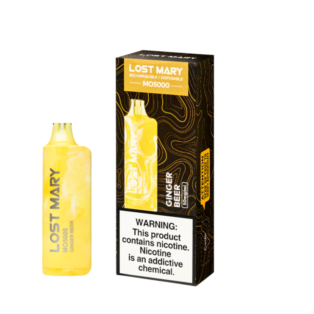 The Ginger Beer Lost Mary MO5000 uses a unique, lemon and ginger beer vape juice flavoring that adds a light ice on exhale.