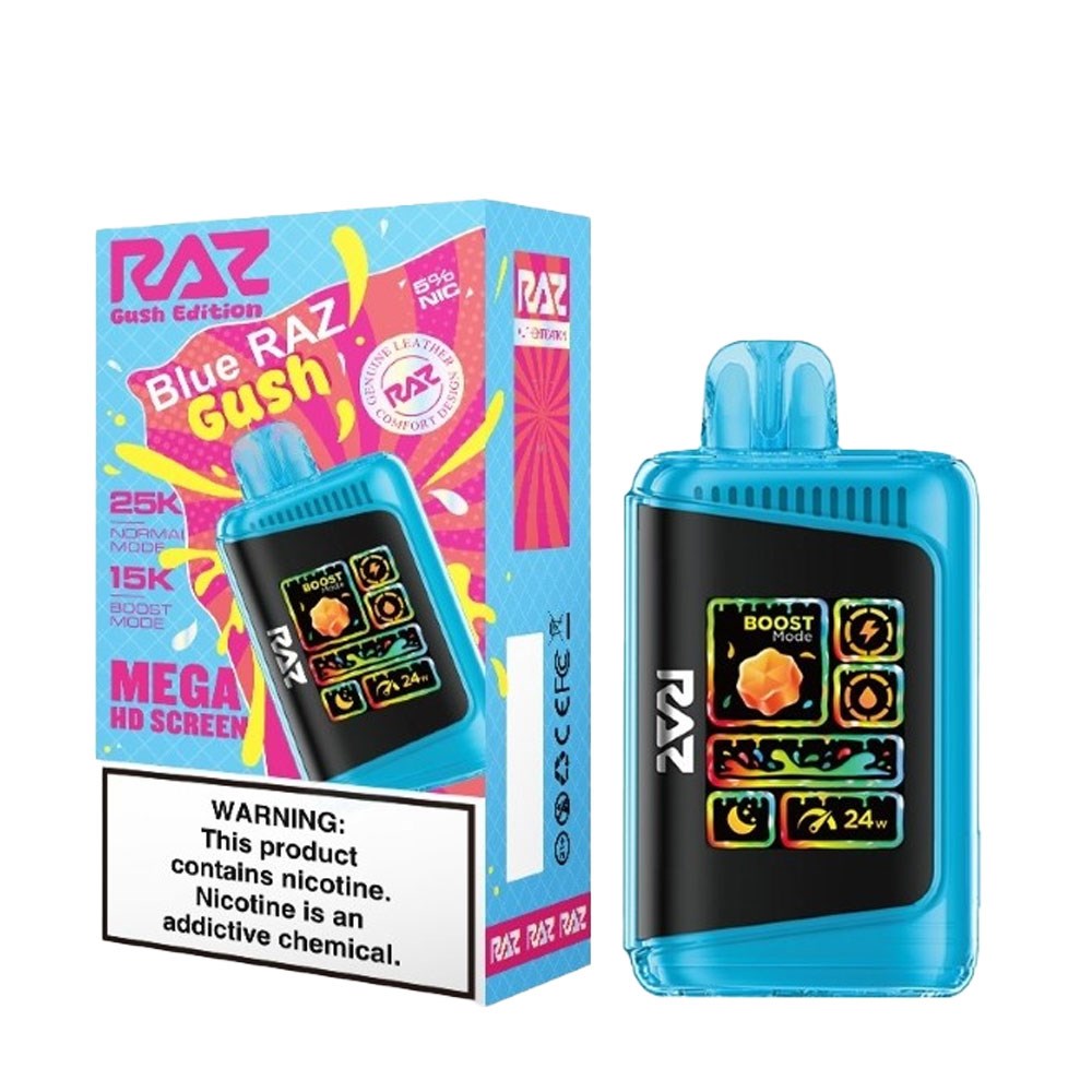The Raz 25000 Disposable vape comes prefilled with 16ml of e-liquid which provides up to 25000 puffs and has a battery capacity of 800 mAh for a long-lasting vaping experience. It features a premium mesh coil and an indicator for both e-liquid capacity and battery life. Additionally, it includes overcharge protection for added safety.