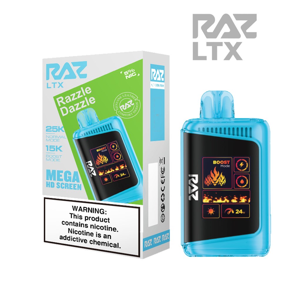 The Raz 25000 Disposable vape comes prefilled with 16ml of e-liquid which provides up to 25000 puffs and has a battery capacity of 800 mAh for a long-lasting vaping experience. It features a premium mesh coil and an indicator for both e-liquid capacity and battery life. Additionally, it includes overcharge protection for added safety.
