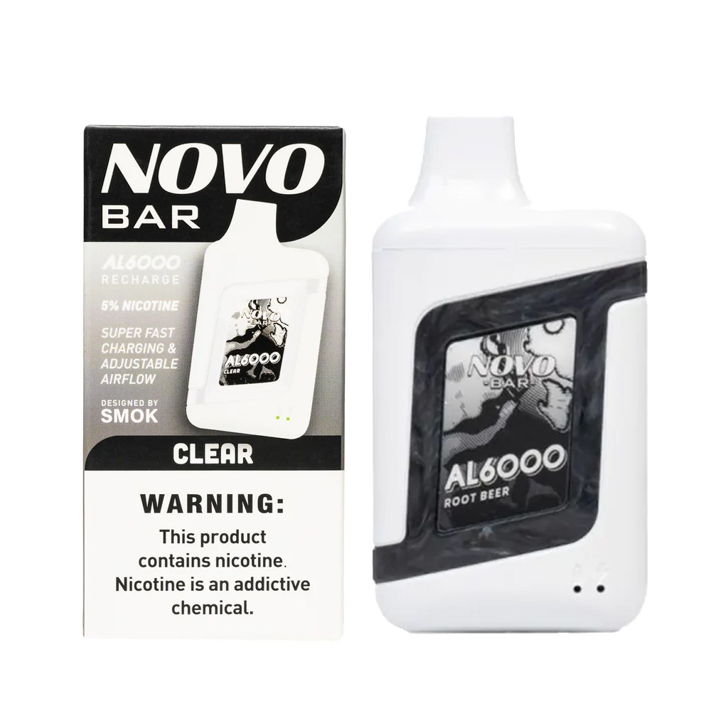 The Novo Bar AL6000 is a rechargeable device by SMOK featuring a Mesh Coil and Adjustable Airflow. Every Novo Bar AL6000 features 13ml of e-liquid, good for up to 6,000 puffs, and is rechargeable via USB Type-C Charging Cable. SMOK has been a long-standing brand in devices, coils, and pod systems, so it's no surprise that the quality of the Novo AL6000 shines.
